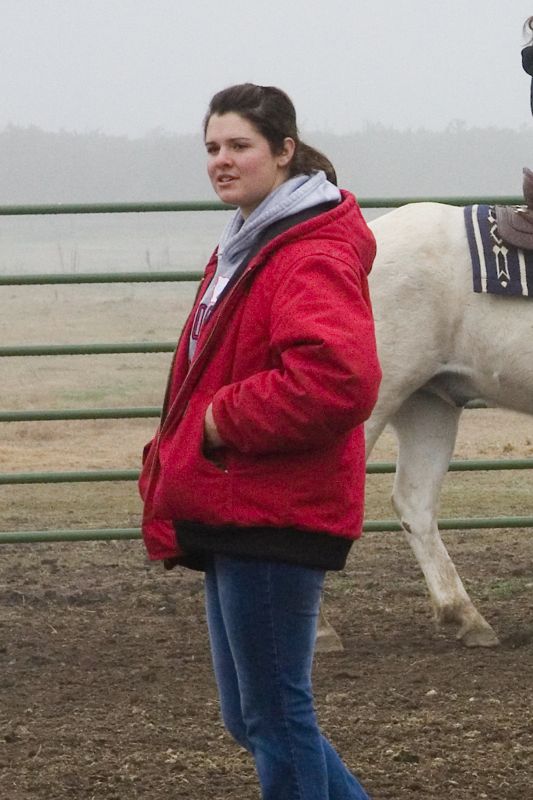 Christie Hagin in the fog, on a Horse & Reader riding Saturday.