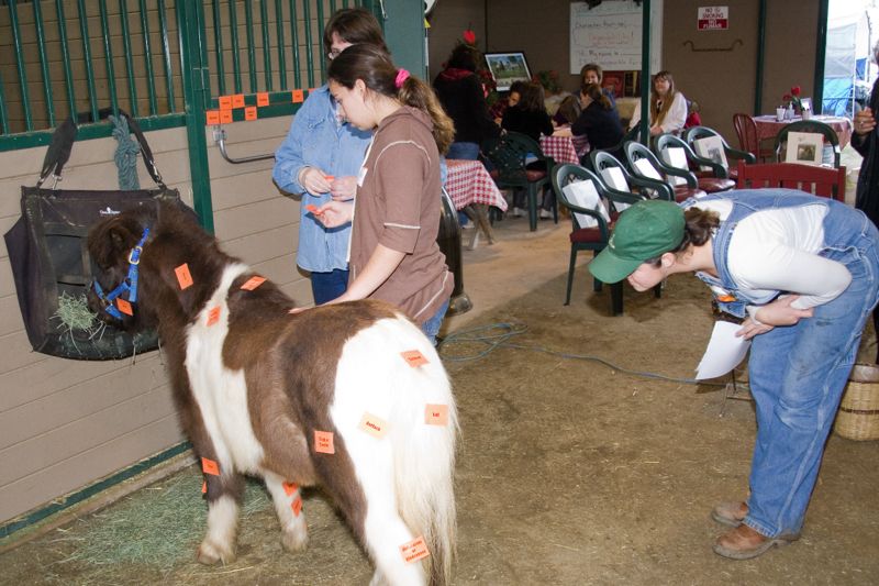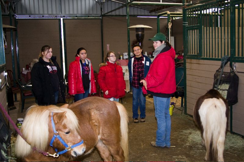 The Horse Whisperers learning about American Miniature Horse "Pixie" from Christie Hagin, while "Sky" looks on.