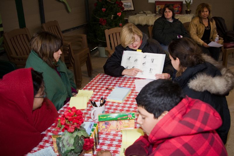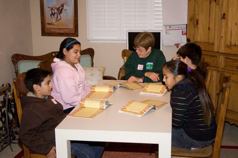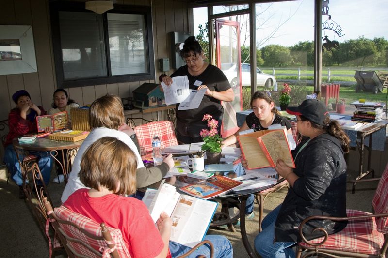 Miss Tracy, Miss Maria and kids doing tribal history research.